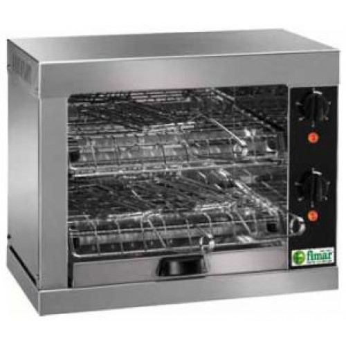 Одноразовая загрузка возможна шести продуктов. Нагрев происходит с помощью кварцевых ламп, которые размещены внизу камеры. Благодаря своим небольшим габаритам тостер FIMAR TOP 6 можно применять в заведениях с небольшой площадью.