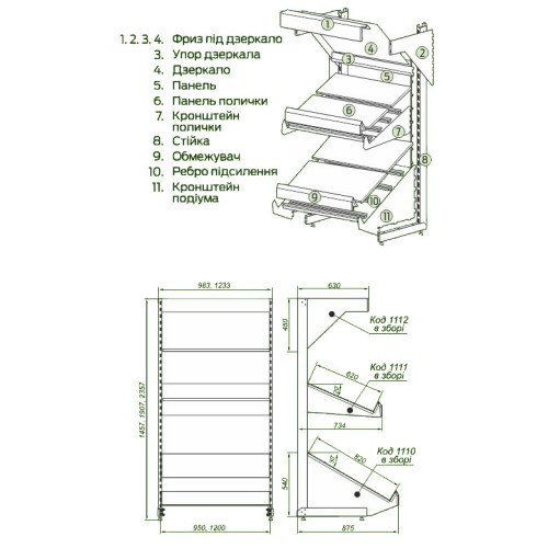 Приставной стеллаж   1717,60 1832,55 2260,05