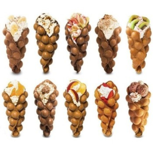 Вафельница Airhot WB-HK1 выпекает гонконгские вафли (вафли в форме пузырьков). Полученные вафли можно завернуть в трубочку, конус и наполнить фруктами, сливками, шоколадом.