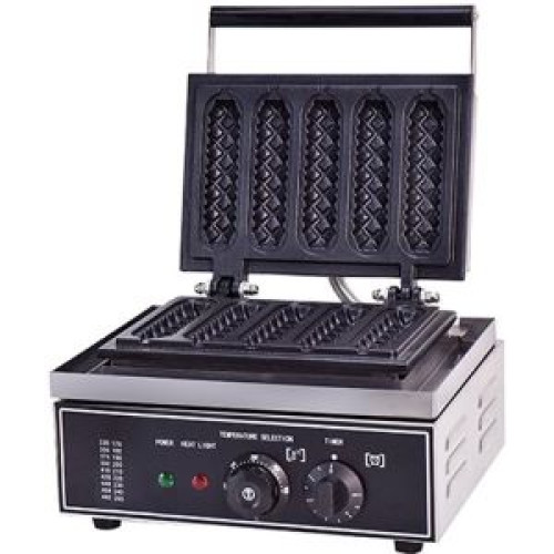 Вафельниця Frosty WBS-5S використовується для випічки вафель з начинкою (корн дог). Робоча зона розміром 270х185 мм на п'ять елементів. Розмір елементів 40х145 мм.