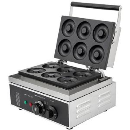 Вафельниця Frosty WBS-6D використовується для випічки донатсів (американські пончики). Робоча зона розміром 270х185 мм на шість одиниць. Діаметр донатса 77 мм, діаметр отвору 23 мм.