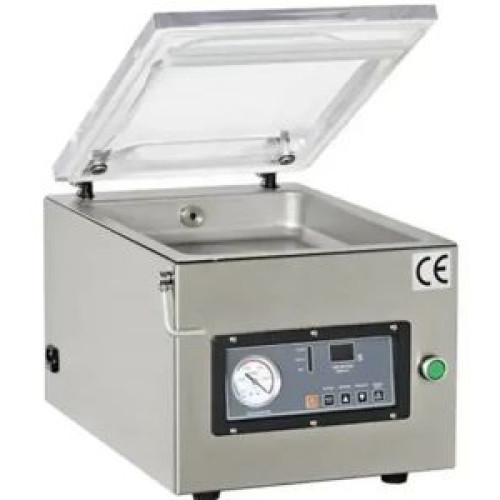 Дана модель має сенсорну панель управління, на якій програмується час вакуумування, час герметизації і час охолодження. До 10 програм пам'яті вакуумування. Дві зварних планки. Довжина зварної планки 400 мм. Розмір камери 440х420х75 мм. Ширина зварної планки 10 мм. Тривалість одного циклу 10-25 секунд. Продуктивність помпи 20 м.куб/ год. Камера, корпус виконані із нержавіючої сталі.