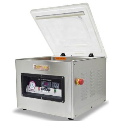 Вакуумно-пакувальна машина GoodFood VMP400DSB призначена для пакування сирих, варених продуктів, напівфабрикатів в закладах громадського харчування, продуктових супермаркетах. Продукти упаковані у вакуум подовжують термін зберігання.