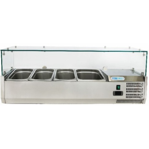 Витрина для топпинга Forcold G-VRX1200-380 предназначена для хранения салатов, закусок в кафе, ресторанах. Наиболее востребованы витрины для топпинга в пиццерии - для хранения заготовок для пиццы.